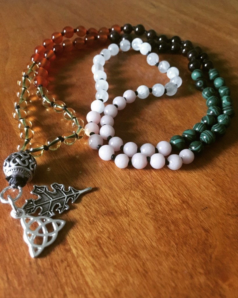 Custom Spirit Beads are deeply personalized spiritual jewelry. They are similar to prayer beads and you can work with them in many ways. I awaken the spirit of the stones and align their energy to you, and I call in the help of the spirit represented by the talisman. I handcraft, consecrate, and bless each set in ritual. Begin with an initial consultation (use form below) to discuss what need/intention you have in mind for your set.